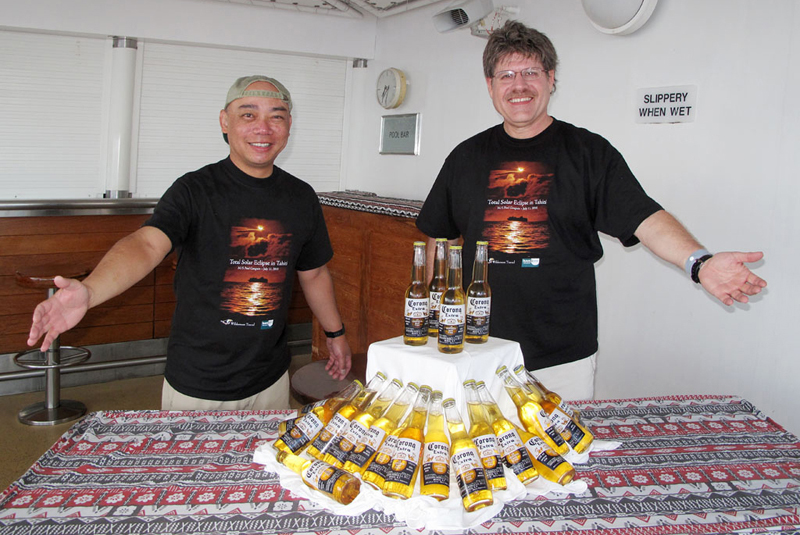 Bob Stephens and Alson Wong caption this image "It's ours, all ours!" but in fact they were generous in sharing. Corona beer is a favorite on