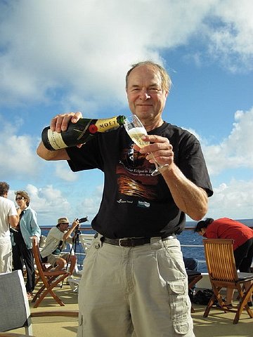 Peter Oberbeck pours a celebratory glass of