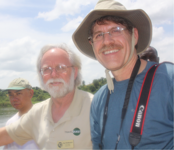 Murchison Falls, with us in sight-seeing boats. Photo by Bob Stephens